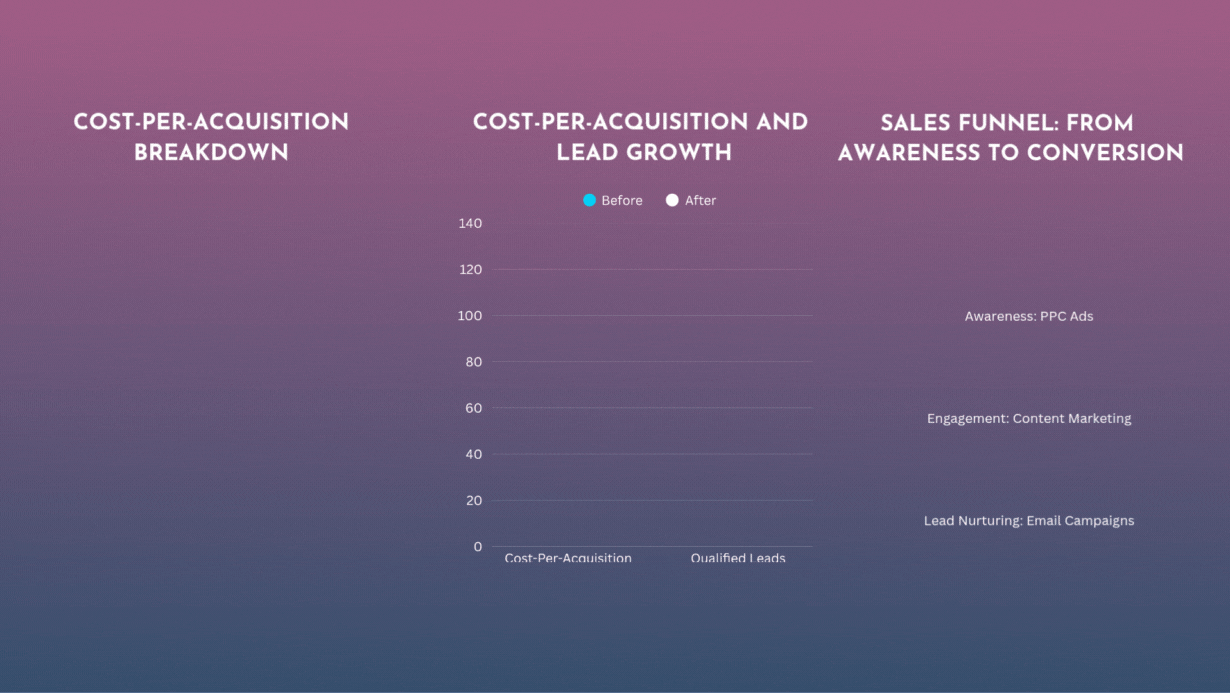 We implemented a comprehensive marketing approach that synergized content marketing, pay-per-click (PPC) advertising, and email campaigns. This strategy centered on creating valuable, engaging content tailored to resonate with our target audience. PPC ads were strategically utilized to drive targeted traffic, while email campaigns effectively nurtured leads through the sales funnel. By aligning these channels, we ensured a unified and effective approach to building both awareness and user acquisition.